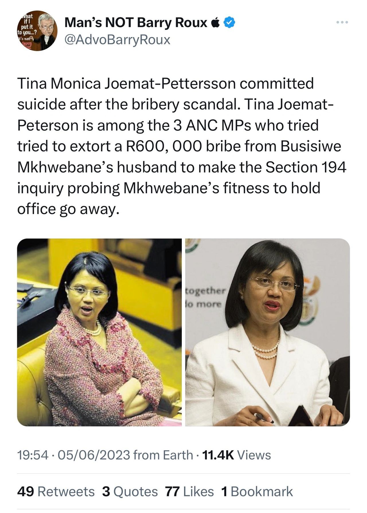 Sisonke Mlamla On Twitter Just In Former Minister Of Energy And Anc Member Of Parliament Tina Joemat Pettersson Has Died Https T Co Qdjdbhtmjy Twitter